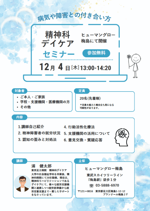 『病気や障害との付き合い方』というテーマでセミナーを以下のように開催します。