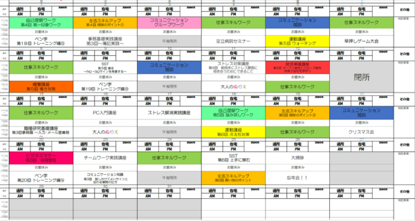 そこで、今回のブログでは、今月のプログラム表をご紹介します!