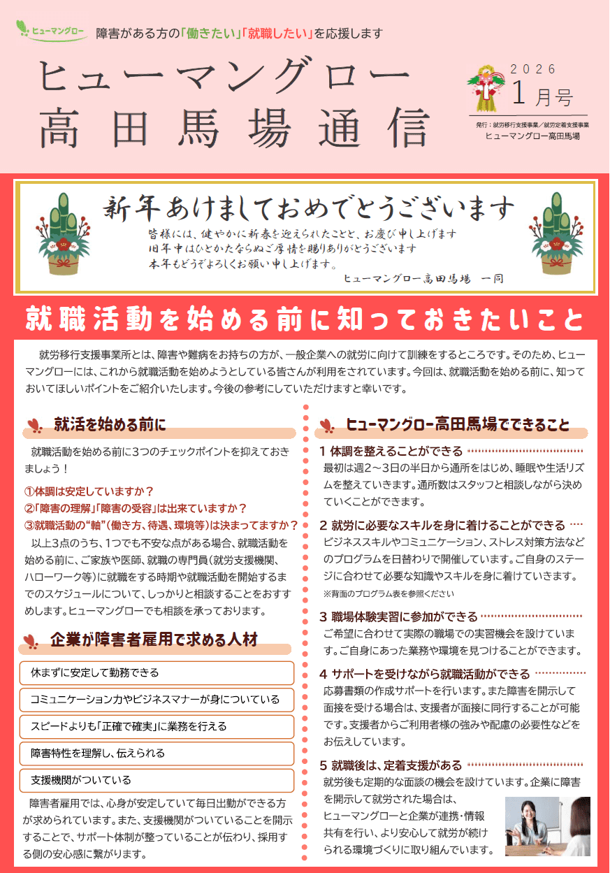 << 前の記事へ<< 一覧へもどる ヒューマングロー高田馬場通信1月号1’26 2025.12.30 ヒューマングローヒューマングロー高田馬場通信1月号1’26のPDFファイルはこちら << 前の記事へ<< 一覧へもどる